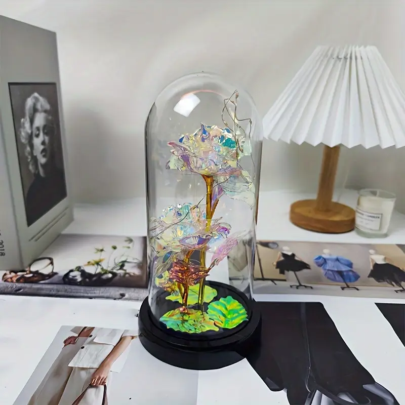 🌹 Galaxy Rose with Diamond Base: A forever rose that never withers, symbolizing everlasting love. The butterfly represents hope and blessings, while the heart-shaped crystal on the base stands for strength and eternity. When illuminated with LED string lights, it becomes an exquisite piece of art—ideal as a Valentine’s Day, anniversary, or birthday gift for your wife, mom, daughter, or girlfriend.