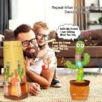 - 🌵 Electronic Dancing Cactus Toy – Plush cactus toy with singing, dancing, recording, and lighting functions. It can repeat, record, and shine while playing 120 songs, making it enjoyable for all age groups for Dancing Cactus Toy for Kids.