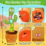 - 🌵 Interactive & Fun – The cactus can dance, sing, move, turn around, repeat speech, and record voices. Its funny movements and cheerful songs capture children’s attention, making it great for entertainment and early learning.