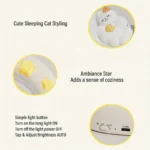 - 🐾 Adorable Cat-Inspired Design: Features a cute cat figurine nestled inside an illuminated ring, adding a whimsical and modern decorative touch.