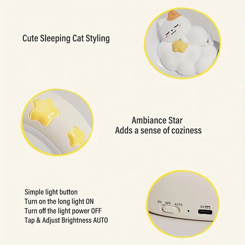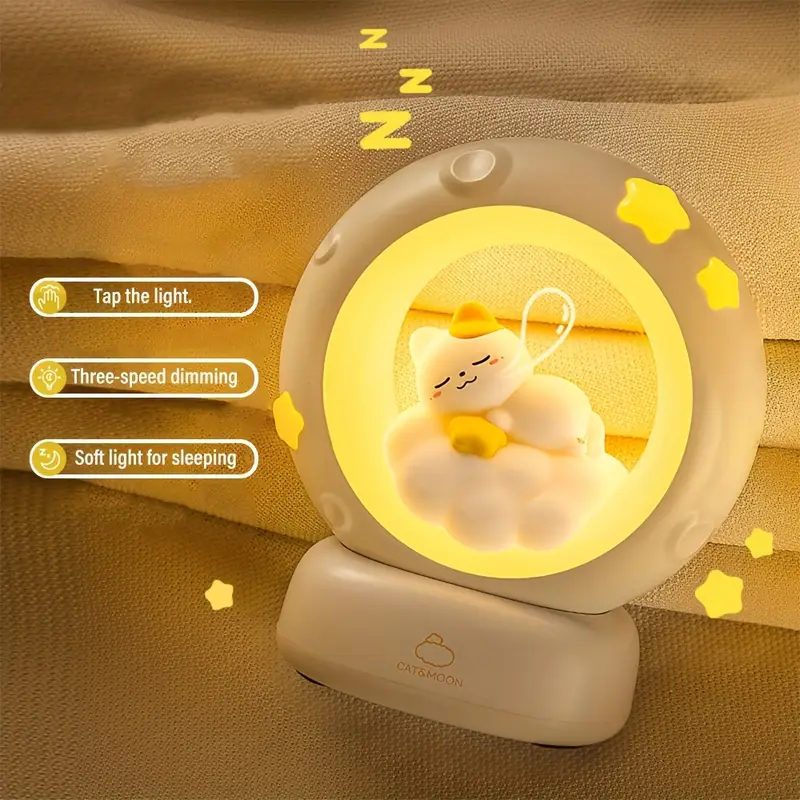 Lamp Type: Night Light, Rechargeable Cat & Moon LED Night Lamp