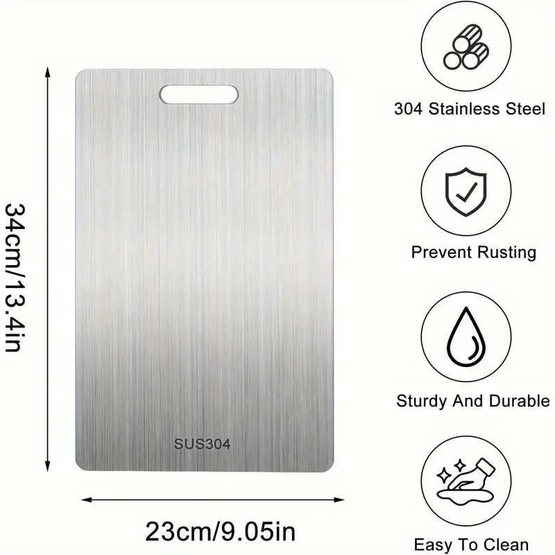 - Built to Last: Unlike wooden or plastic cutting boards that wear out over time, this stainless steel chopping board offers long-lasting durability, eliminating the need for frequent replacements.
